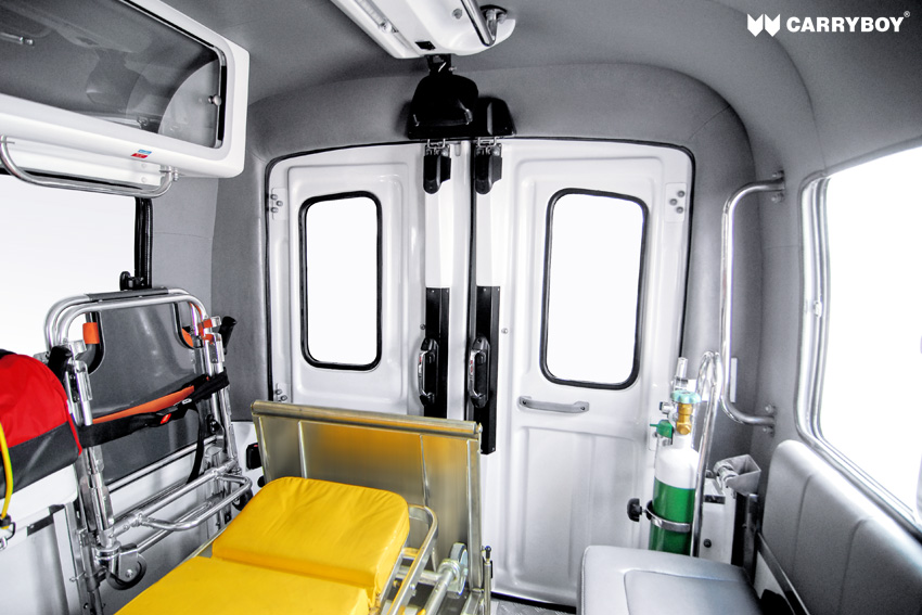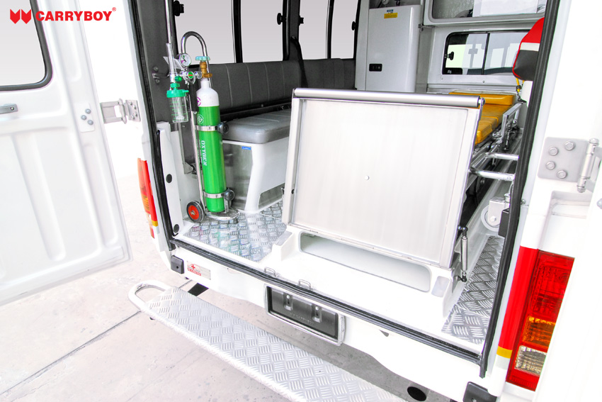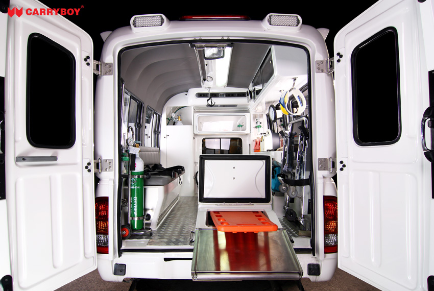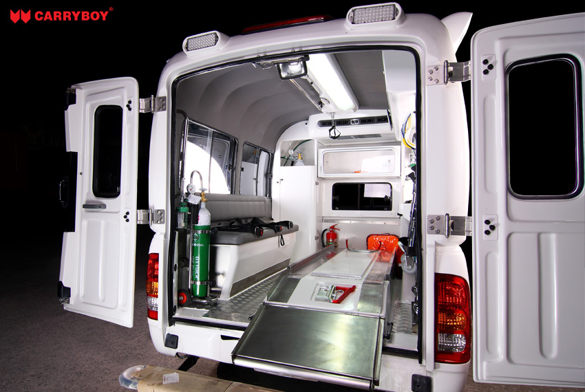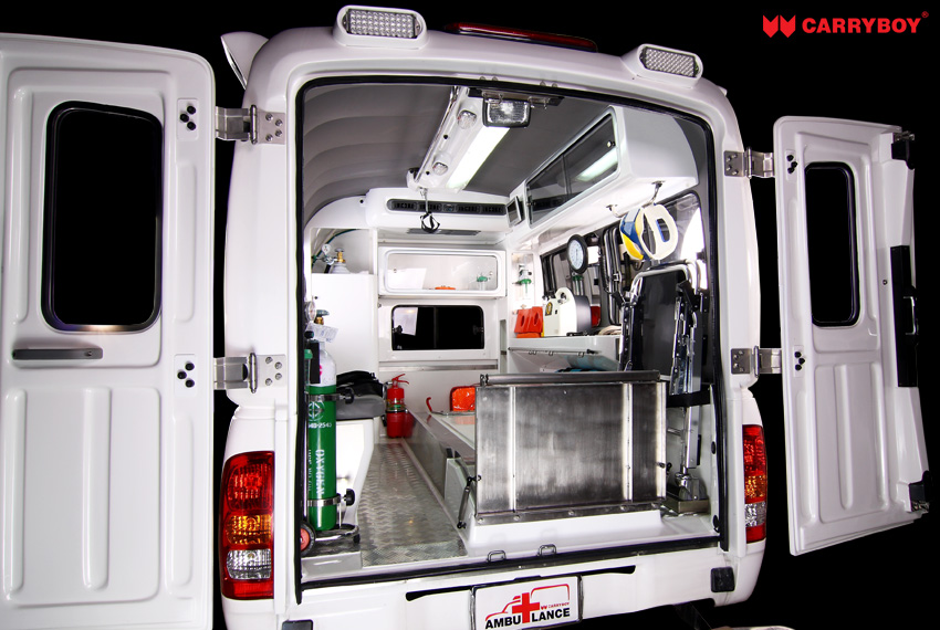 easy to operate. 2 rear doors, sliding window with emergency warning LED. light signal & spot light.
